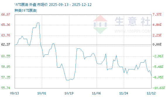 12月12日生意社WTI原油基準(zhǔn)價為58.46美元/桶