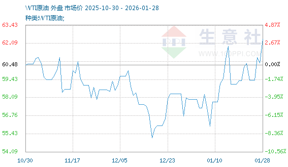 1月28日生意社WTI原油基準價為60.63美元/桶