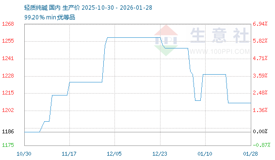 1月28日生意社輕質純堿基準價為1208.00元/噸